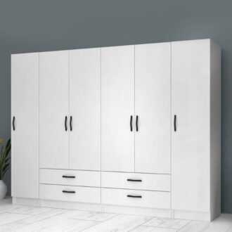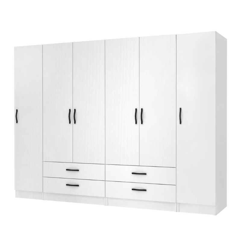Ντουλάπα ρούχων Ricardo Megapap εξάφυλλη με συρτάρια χρώμα λευκό 240×51,8×181εκ.
