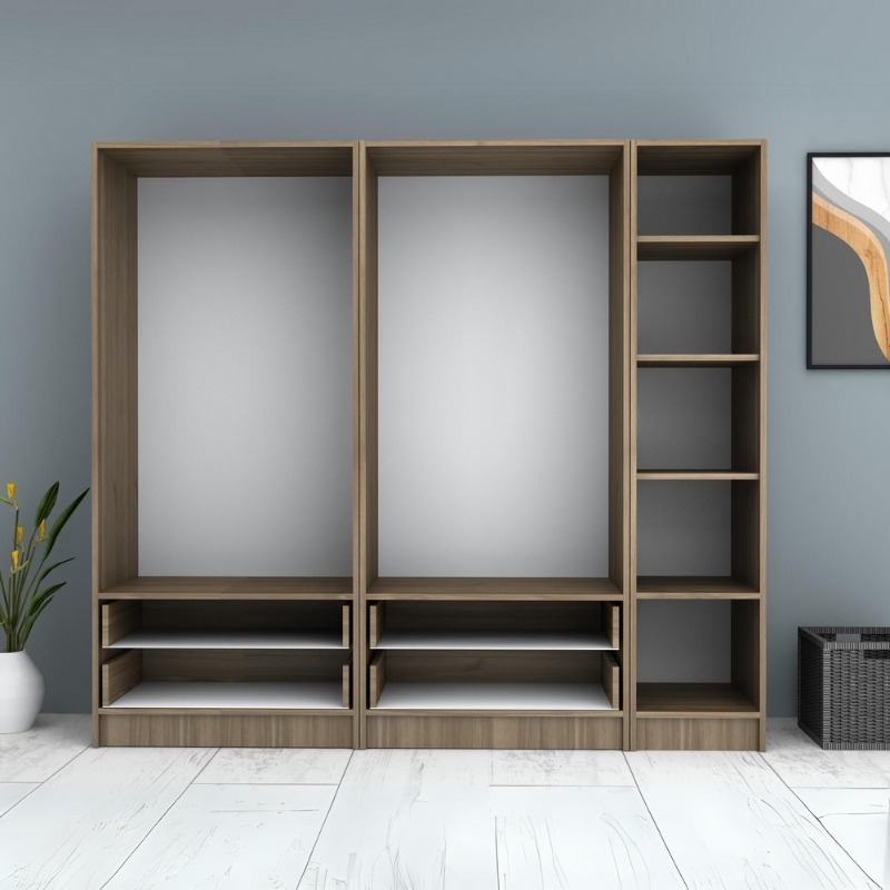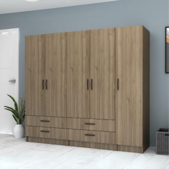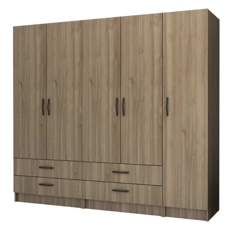 Ντουλάπα ρούχων Ricardo Megapap πεντάφυλλη με συρτάρια χρώμα καρυδί 200×51,8×181εκ.