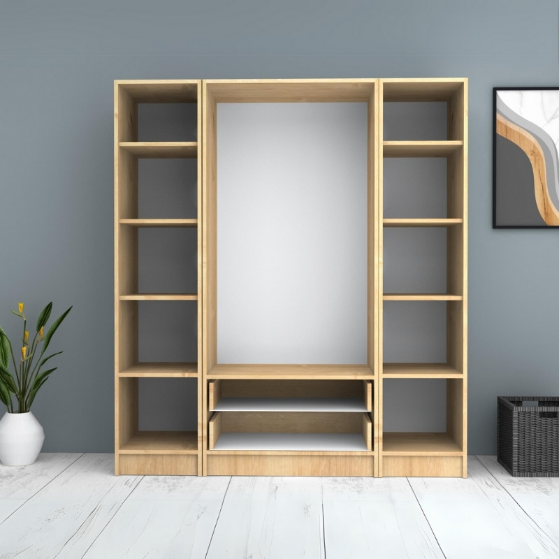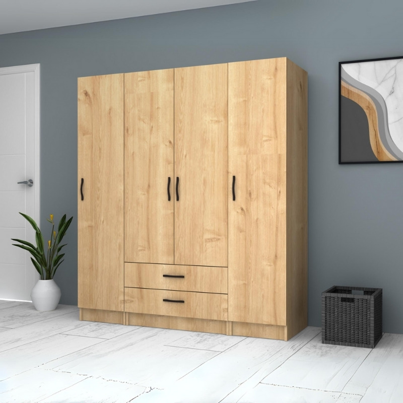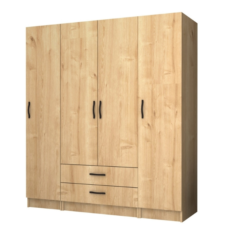 Ντουλάπα ρούχων Ricardo Megapap τετράφυλλη με συρτάρια χρώμα φυσικό οξιάς 160×51,8×181εκ.