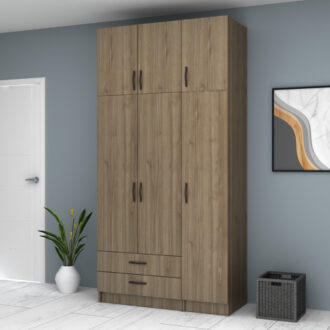 Ντουλάπα ρούχων Ricardo Megapap τρίφυλλη με πατάρι και συρτάρια χρώμα καρυδί 120×61,8×240εκ.