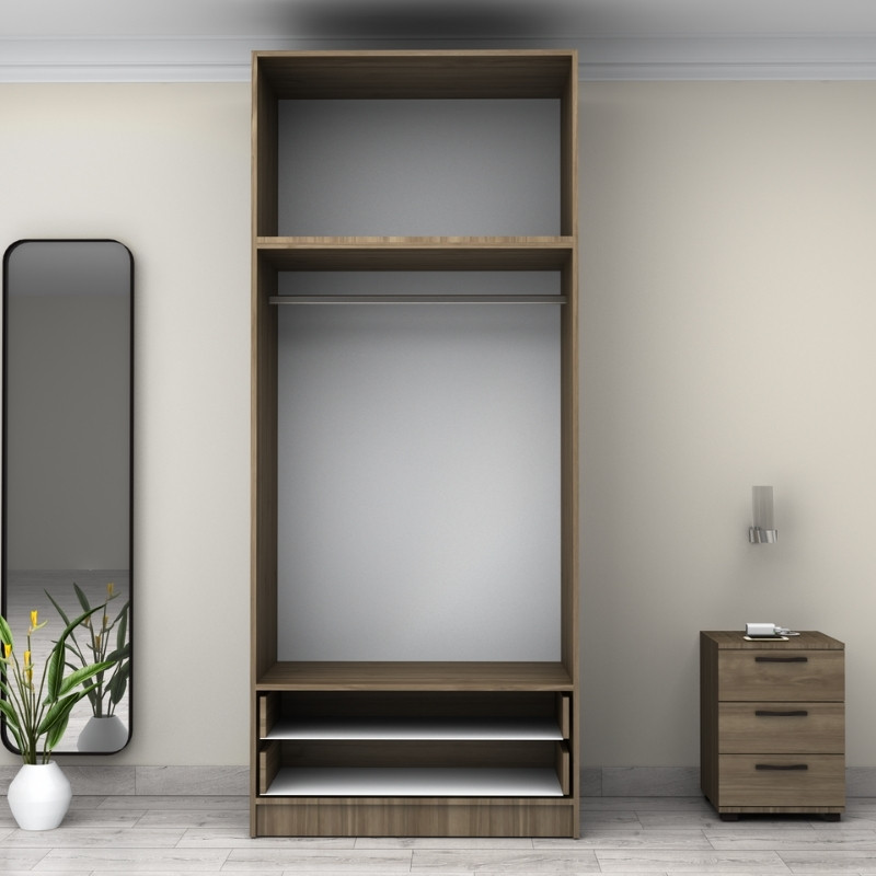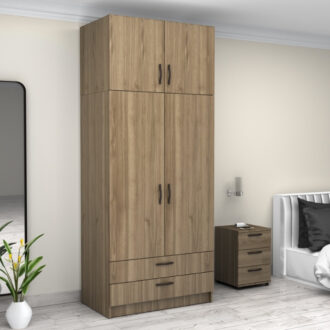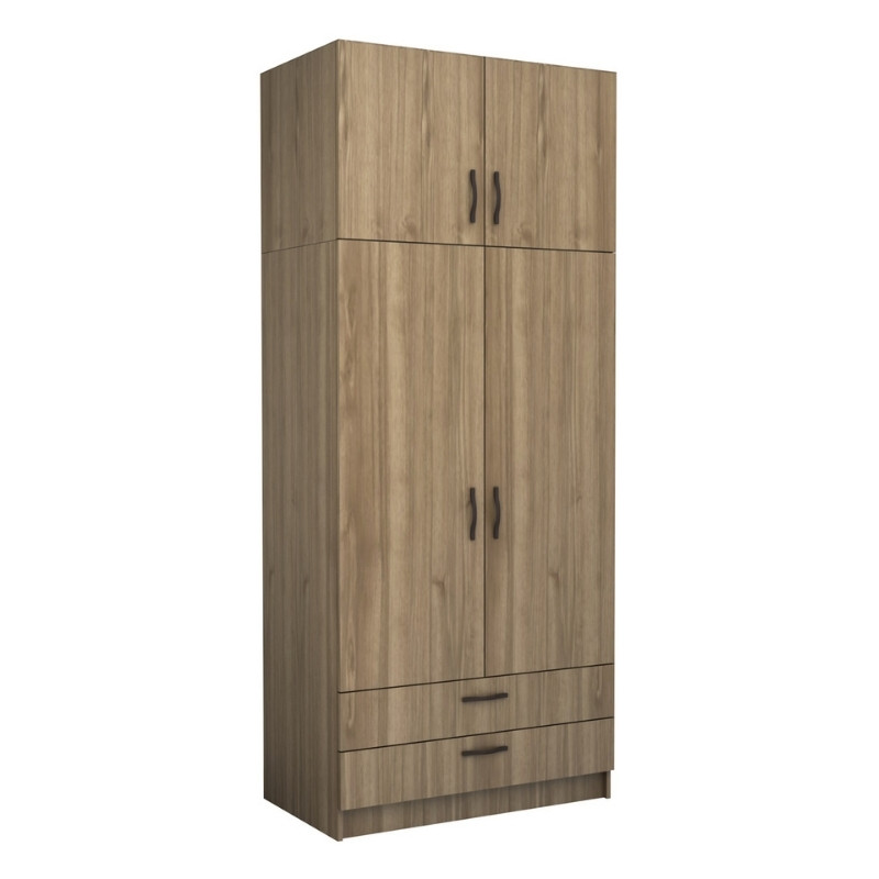 Ντουλάπα ρούχων Victoria Megapap δίφυλλη με πατάρι και συρτάρια χρώμα καρυδί 100x60x240εκ.