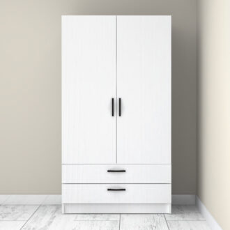 Ντουλάπα ρούχων Victoria Megapap δίφυλλη με συρτάρια χρώμα λευκό 100x60x181εκ.