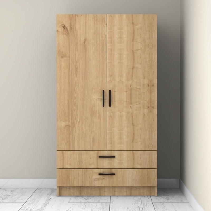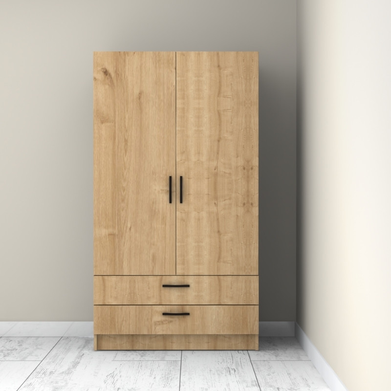 Ντουλάπα ρούχων Victoria Megapap δίφυλλη με συρτάρια χρώμα φυσικό οξιάς 100x60x181εκ.