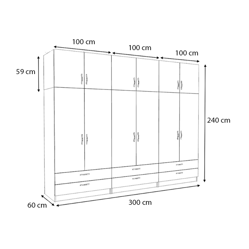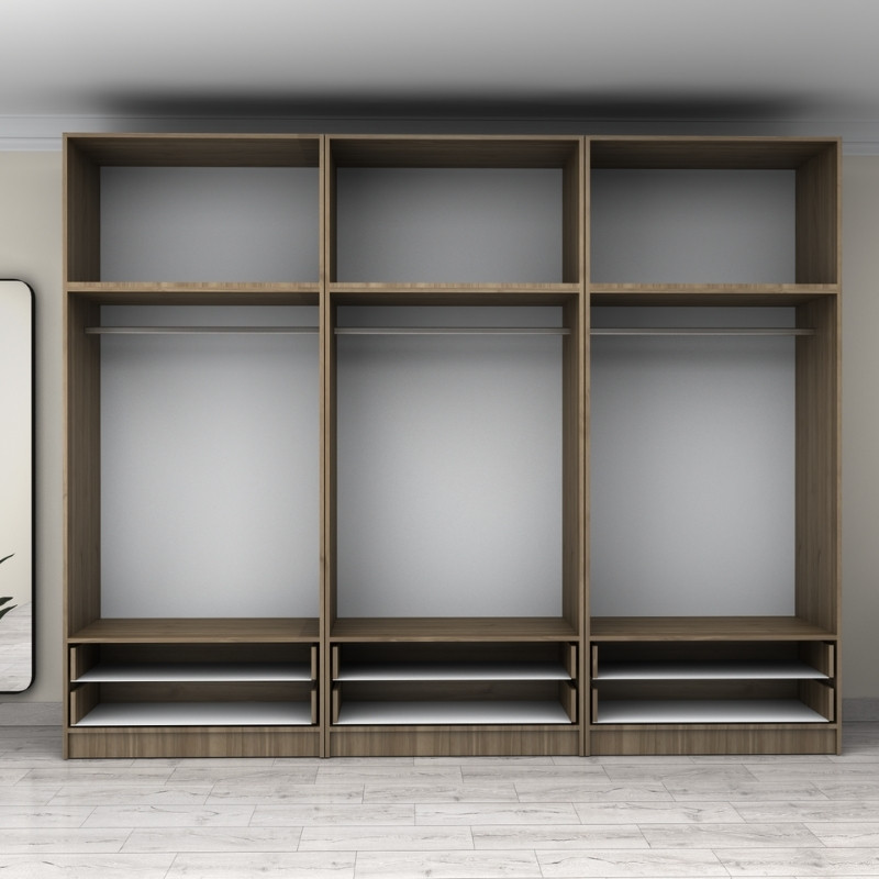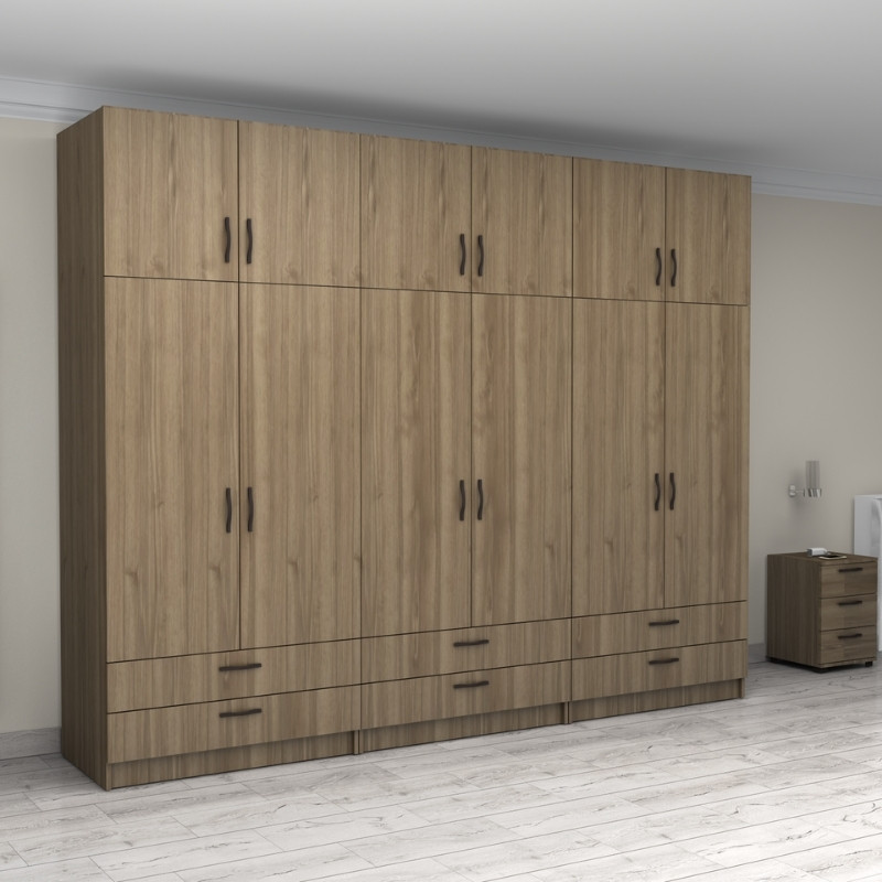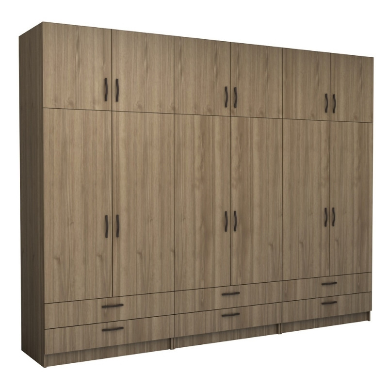 Ντουλάπα ρούχων Victoria Megapap εξάφυλλη με συρτάρια χρώμα καρυδί 300x60x240εκ.