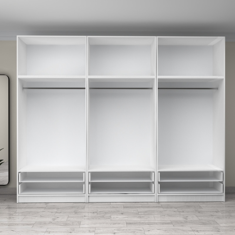 Ντουλάπα ρούχων Victoria Megapap εξάφυλλη με συρτάρια χρώμα λευκό 300x60x240εκ.