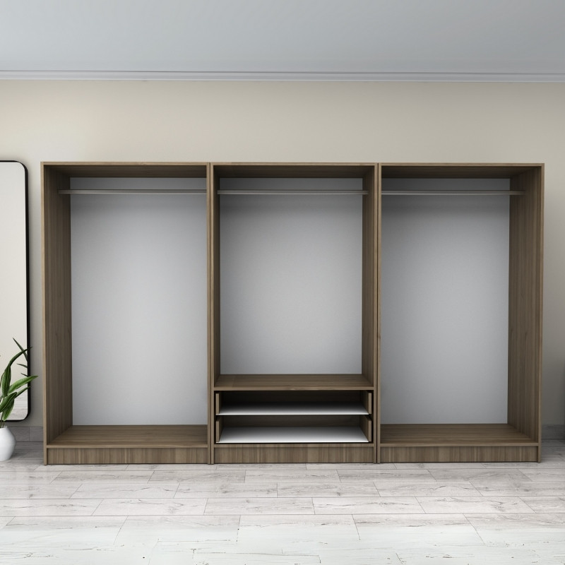Ντουλάπα ρούχων Victoria Megapap εξάφυλλη με συρτάρια χρώμα καρυδί 300x60x181εκ.