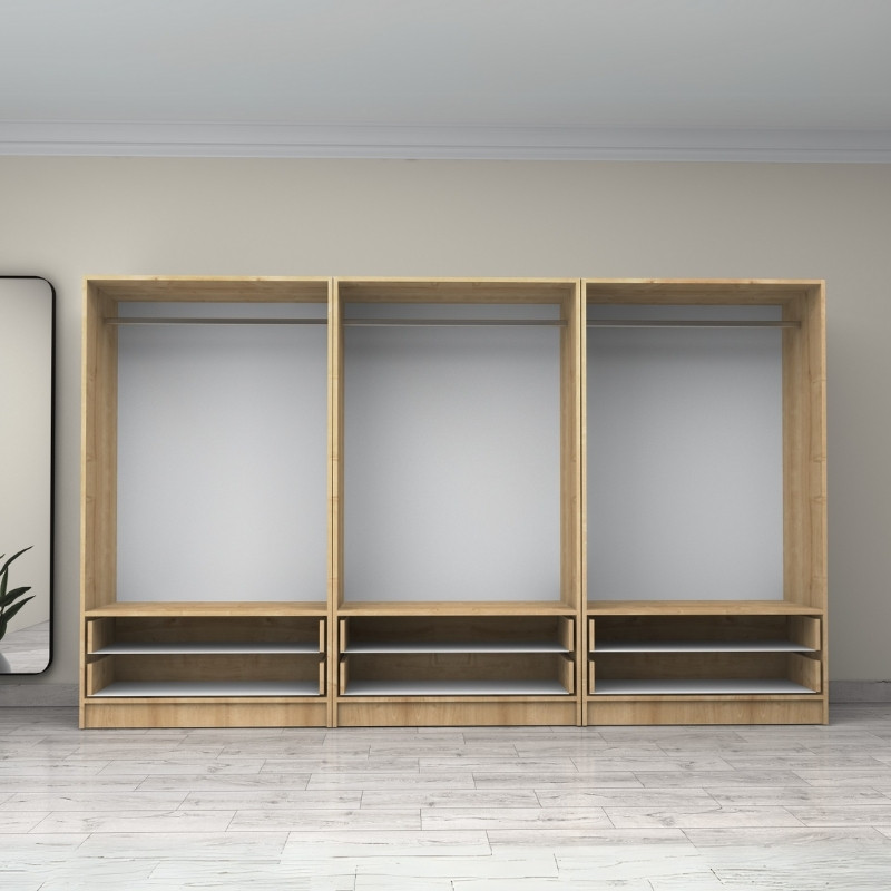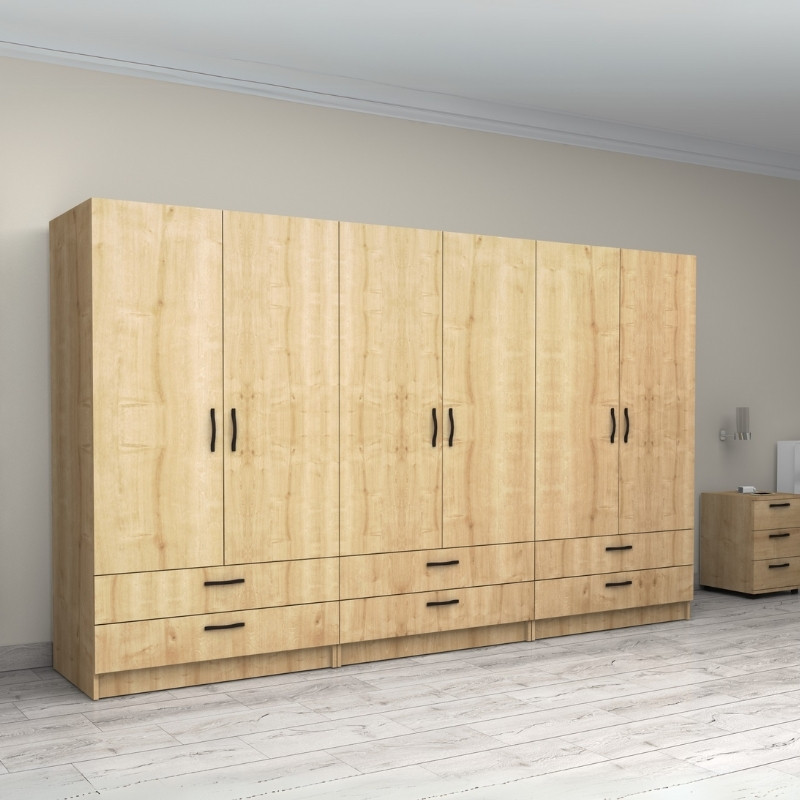 Ντουλάπα ρούχων Victoria Megapap εξάφυλλη με συρτάρια χρώμα φυσικό οξιάς 300x60x181εκ.
