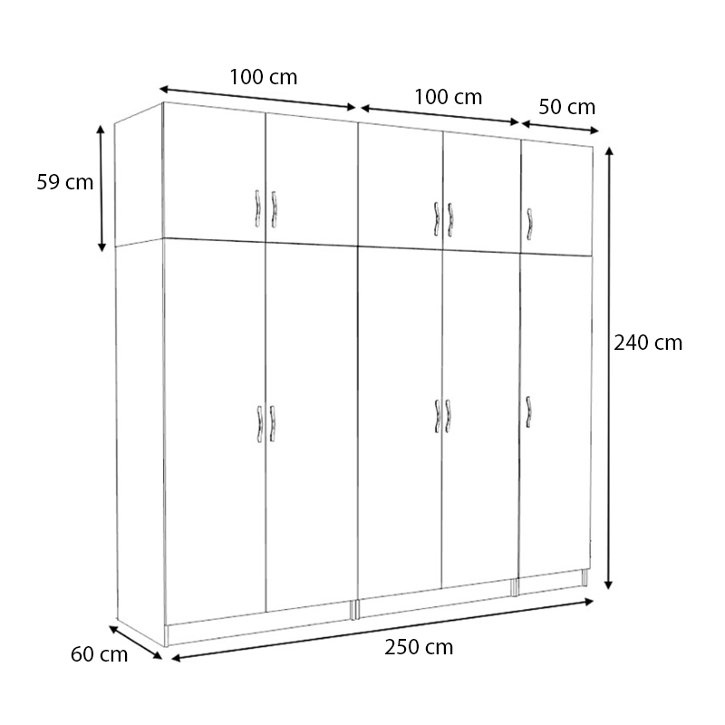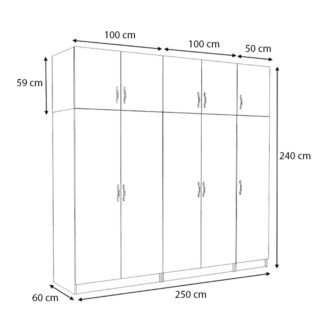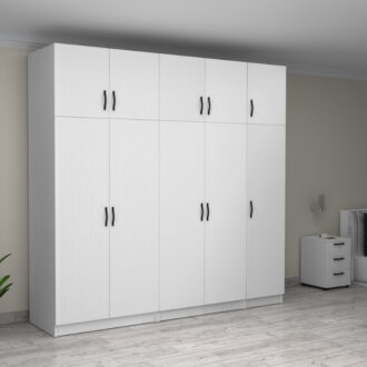 Ντουλάπα ρούχων Victoria Megapap πεντάφυλλη με πατάρι χρώμα λευκό 250x60x240εκ.