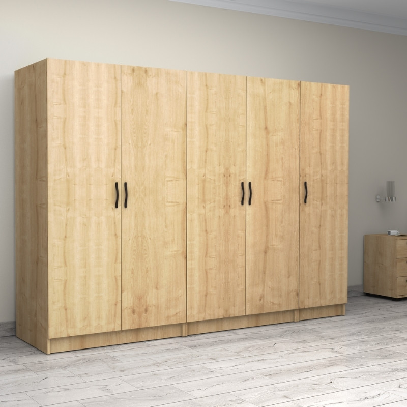 Ντουλάπα ρούχων Victoria Megapap πεντάφυλλη χρώμα φυσικό οξιάς 250x60x181εκ.