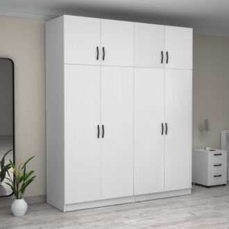 Ντουλάπα ρούχων Victoria Megapap τετράφυλλη με πατάρι χρώμα λευκό 200x60x240εκ.