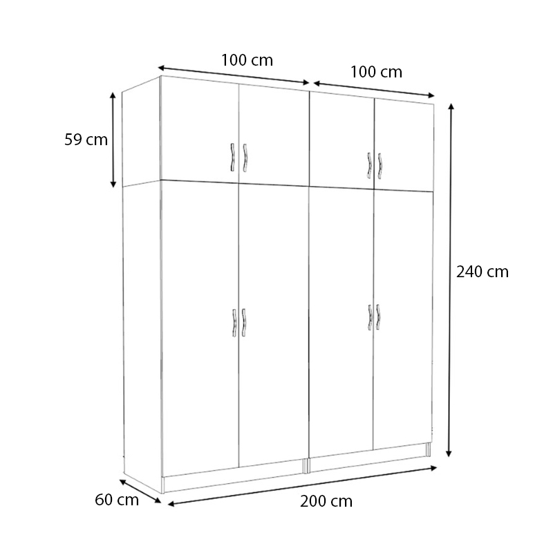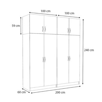 • Διαστάσεις ντουλάπας: Μήκος 200 x Βάθος 60 x Ύψος 181 εκ.