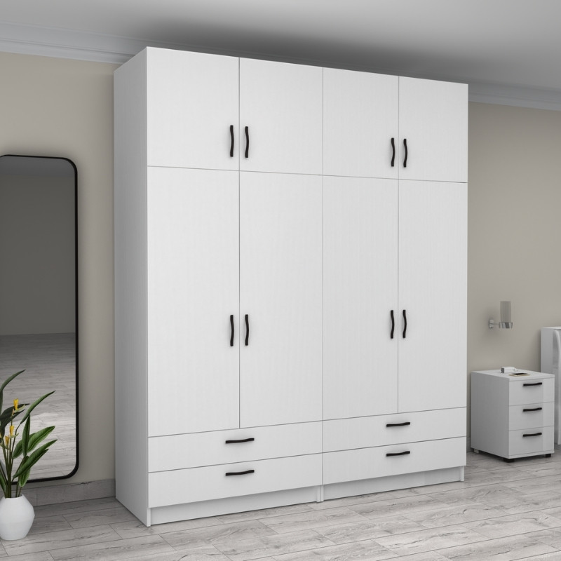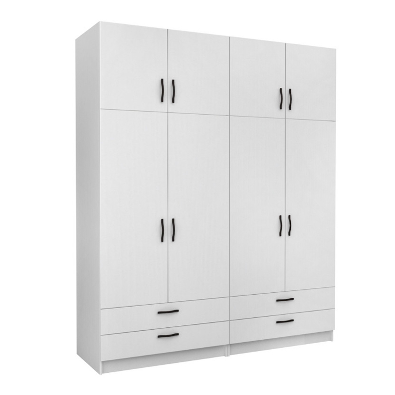 Ντουλάπα ρούχων Victoria Megapap τετράφυλλη με πατάρι και συρτάρια χρώμα λευκό 200x60x240εκ.