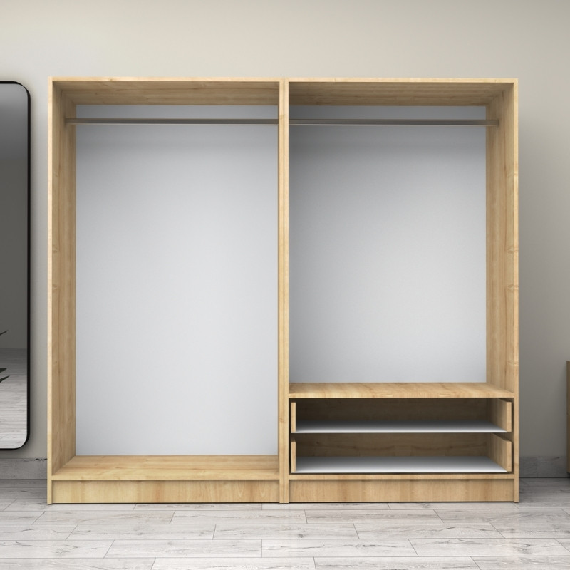 Ντουλάπα ρούχων Victoria Megapap τετράφυλλη με συρτάρια χρώμα φυσικό οξιάς 200x60x181εκ.