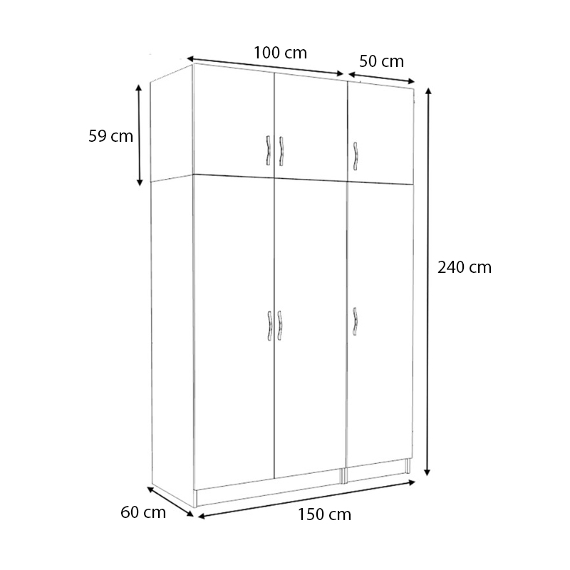 Ντουλάπα ρούχων Victoria Megapap τρίφυλλη με πατάρι χρώμα λευκό 150x60x240εκ.