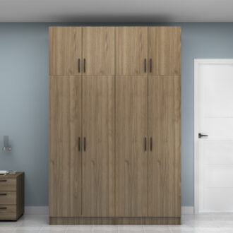 Ντουλάπα ρούχων Vivian Megapap τετράφυλλη με πατάρι χρώμα καρυδί 160×51,8×240εκ.