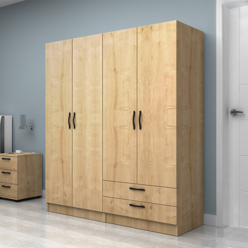 Ντουλάπα ρούχων Vivian Megapap τετράφυλλη με συρτάρια χρώμα φυσικό οξιάς 160×51,8×181εκ.