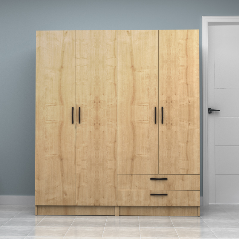 Ντουλάπα ρούχων Vivian Megapap τετράφυλλη με συρτάρια χρώμα φυσικό οξιάς 160×51.8×181εκ.