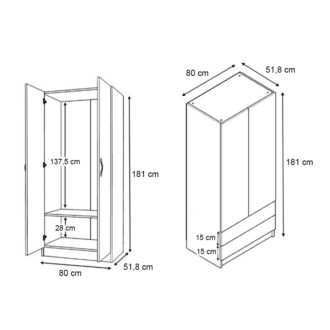 • Διαστάσεις ντουλάπας: Μήκος 160 x Βάθος 51,8 x Ύψος 181 εκ.