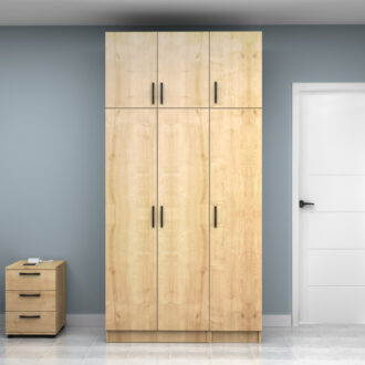 Ντουλάπα ρούχων Vivian Megapap τρίφυλλη με πατάρι χρώμα φυσικό οξιάς 120×51,8×240εκ.