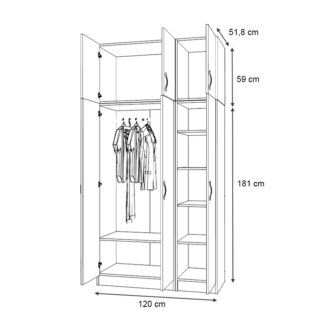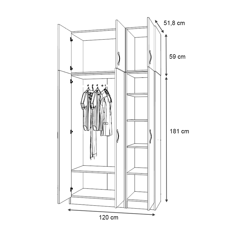 • Διαστάσεις δίφυλλης ντουλάπας: Μήκος 80 x Βάθος 51,8 x Ύψος 181 εκ.