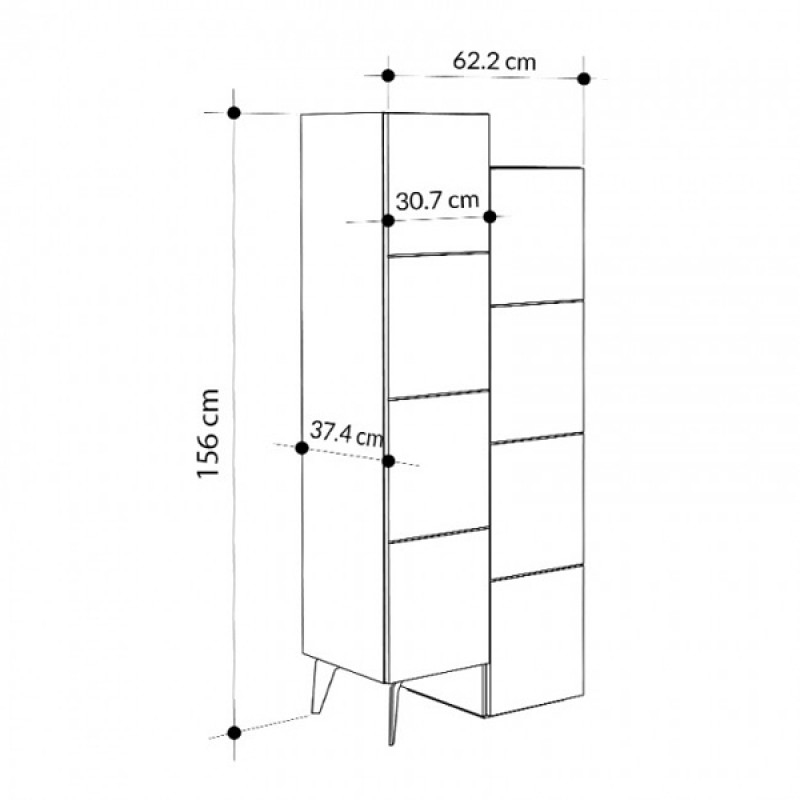 • Διαστάσεις: Μήκος 62,2 x Βάθος 37,4 x Ύψος 156 εκ.