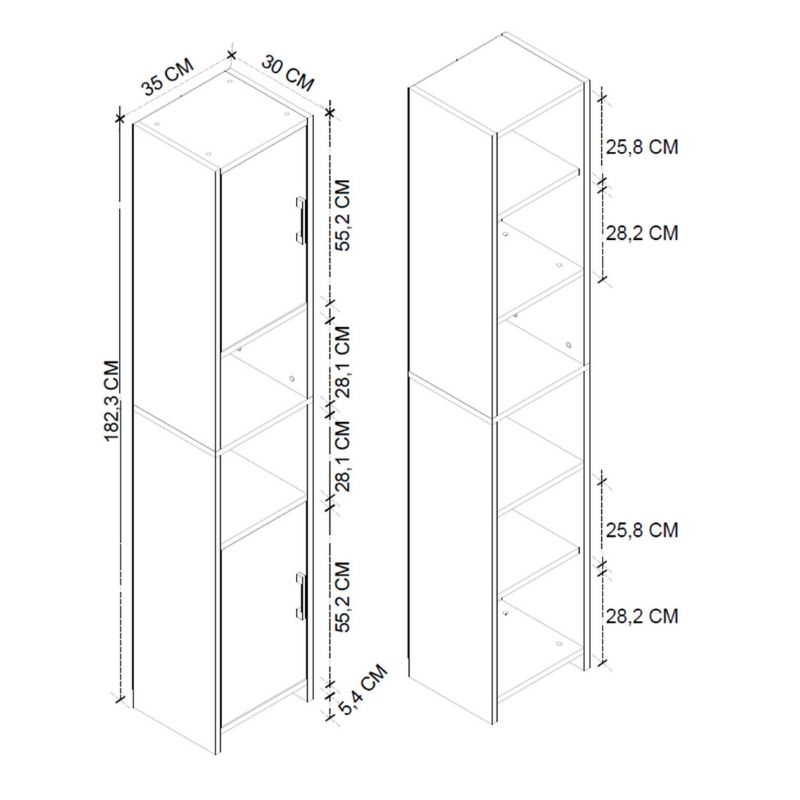 Έπιπλο κουζίνας – μπάνιου Hobbes Megapap από μελαμίνη χρώμα λευκό 35x30x182,3εκ.