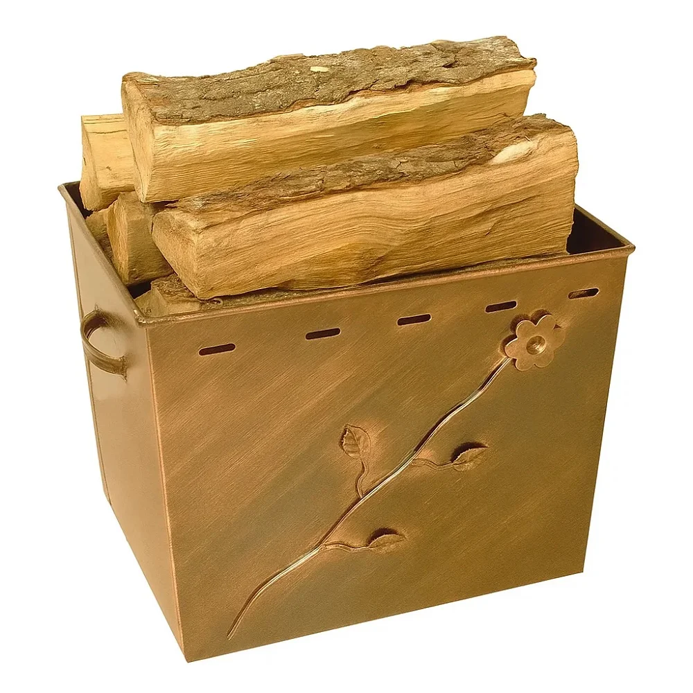 Ξυλοθήκη Φάλτσο – Μεταλλική Χρυσαφί, ιδανικό αξεσουάρ για να διατηρείτε τα καυσόξυλα σας τακτοποιημένα και εύκολα προσβάσιμα δίπλα στο τζάκι ή τη σόμπα σας.