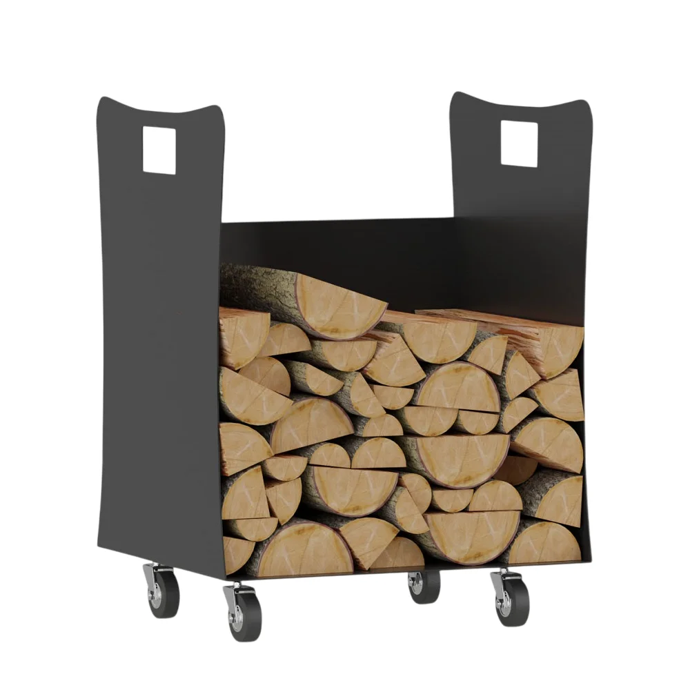 Η ξυλοθήκη Box Open σε μαύρο χρώμα συνδυάζει πρακτικότητα και στυλ, προσφέροντας μια ιδανική λύση αποθήκευσης για τα ξύλα του τζακιού σας.