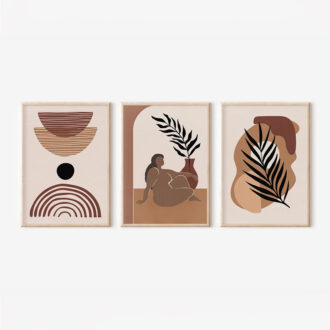 Αναβαθμίστε τον χώρο σας με την αίσθηση της ζεστής, φυσικής τέχνης: το Τρίπτυχο Fanzia είναι το ιδανικό στοιχείο για να προσδώσετε έναν Boho-chic, εκλεπτυσμένο χαρακτήρα στους τοίχους σας. Αυτή η σύνθεση τριών τεμαχίων, ενισχυμένη από ψηφιακές εκτυπώσεις υψηλής ανάλυσης, διαθέτει αφηρημένα μοτίβα με φυσικές, οργανικές μορφές σε μία πλούσια παλέτα από βαθιά, ζεστά χρώματα. Μέσα από την αρμονική τους αλληλεπίδραση, δημιουργούν έναν αισθησιακό, sophisticated ρυθμό και μία έντονη αισθητική δήλωση.