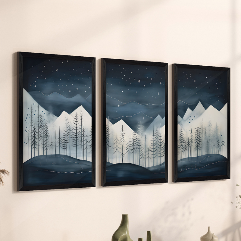Φέρτε την ορμή και τη γαλήνη του ωκεανού στο σαλόνι σας με αυτό το εντυπωσιακό σετ τριών πινάκων. Ο συνδυασμός των βαθιών μπλε αποχρώσεων με τις χρυσές λεπτομέρειες δημιουργεί ένα οπτικό αποτέλεσμα υψηλής αισθητικής, ιδανικό για σύγχρονους και εκλεπτυσμένους χώρους.