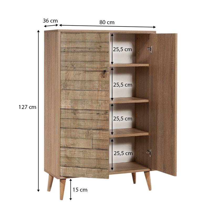 Παπουτσοθήκη – ντουλάπι Soho Megapap από μελαμίνη χρώμα sonoma 80x36x127εκ.