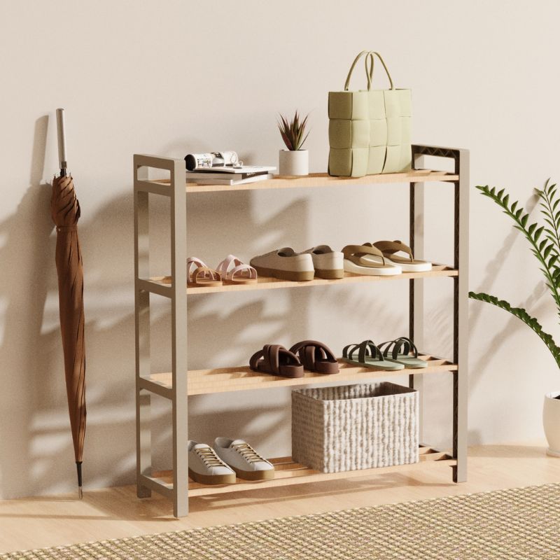 Παπουτσοθήκη ξύλινη – πλαστική χρώμα φυσικό – μπεζ 66x20x68εκ.
