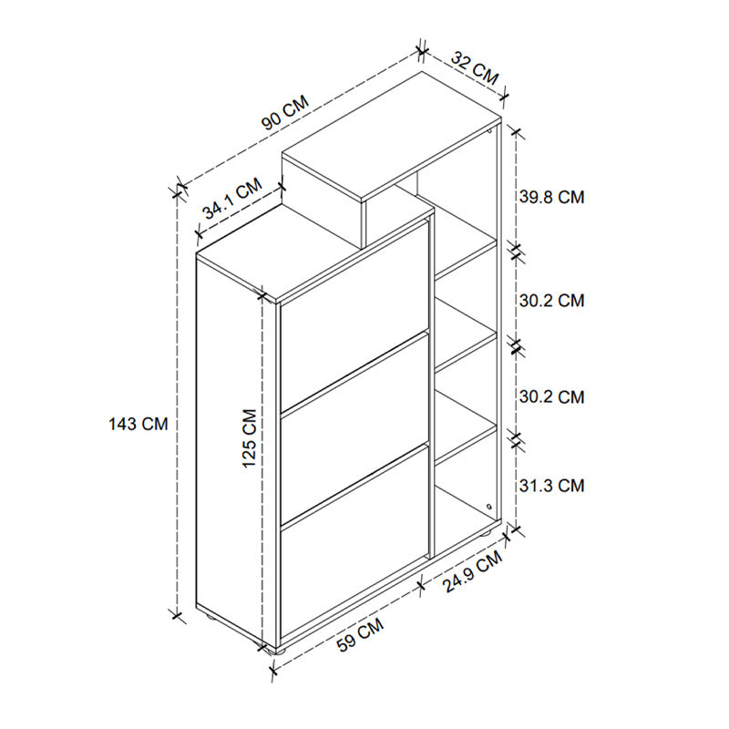 • Διαστάσεις: Μήκος 90 x Βάθος 32 x Ύψος 143 εκ.
