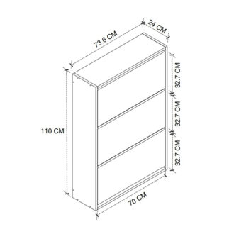 • Διαστάσεις: Μήκος 73,6 x Βάθος 24 x Ύψος 110 εκ.