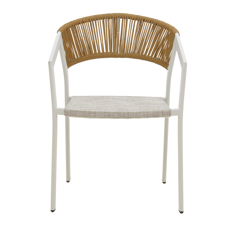 Πολυθρόνα αλουμινίου Glisten pakoworld στοιβαζόμενη λευκός σκελετός-textilene γκρι- pe rattan σε φυσική απόχρωση 58x56x82εκ