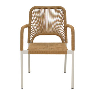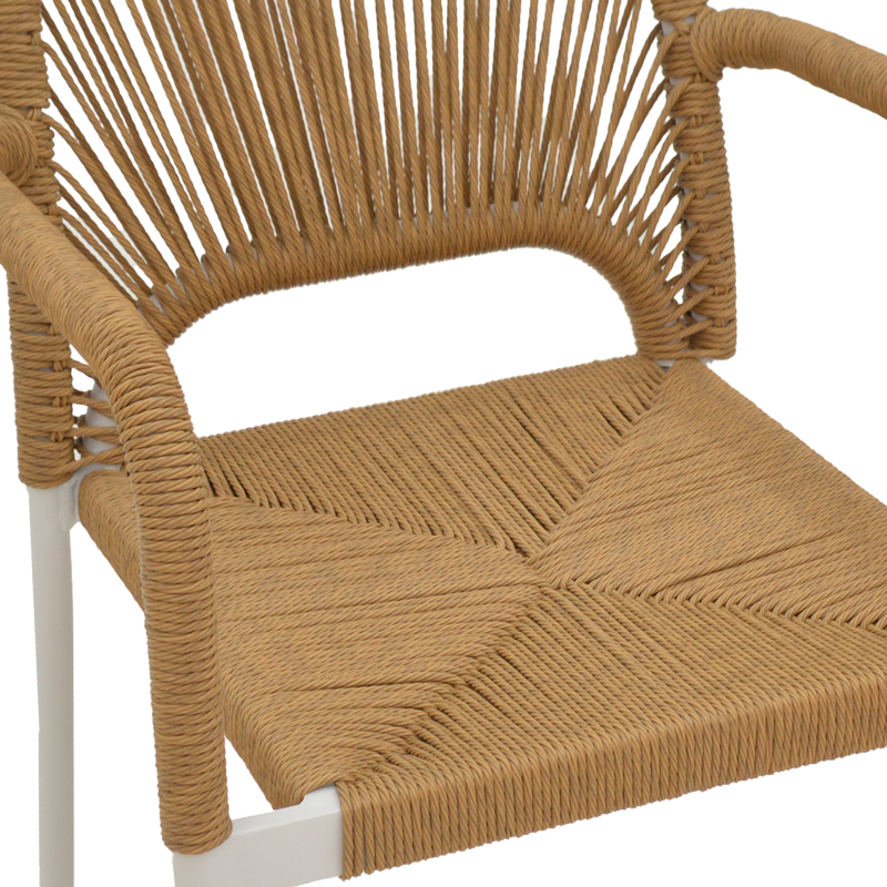 Πολυθρόνα αλουμινίου Norture pakoworld στοιβαζόμενη λευκός σκελετός-φυσικό rattan 57x61x85εκ