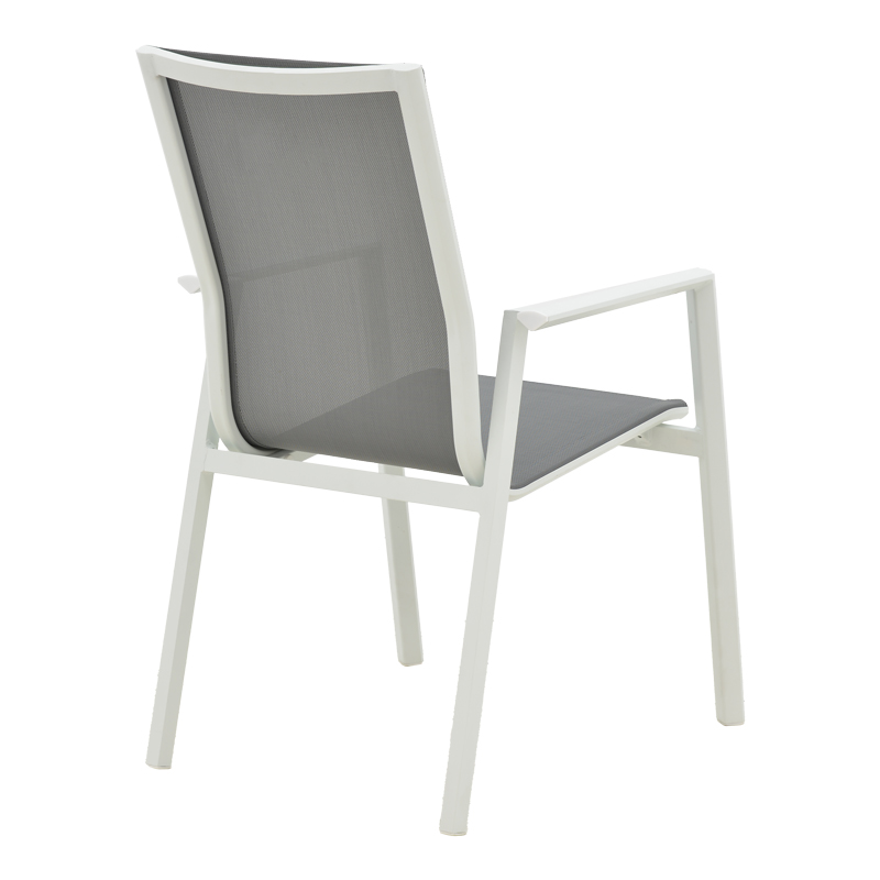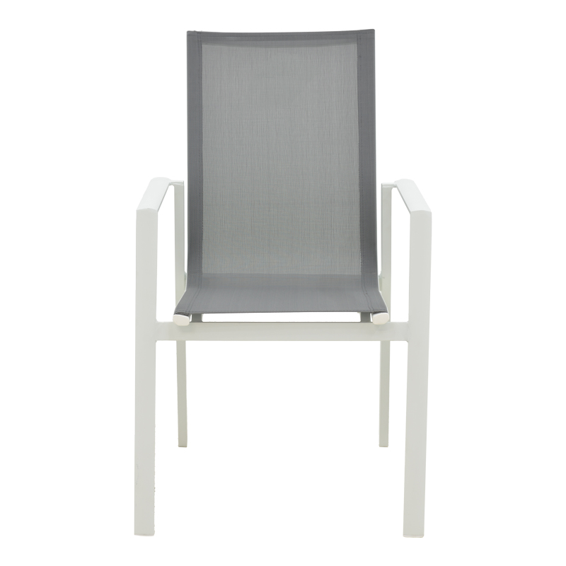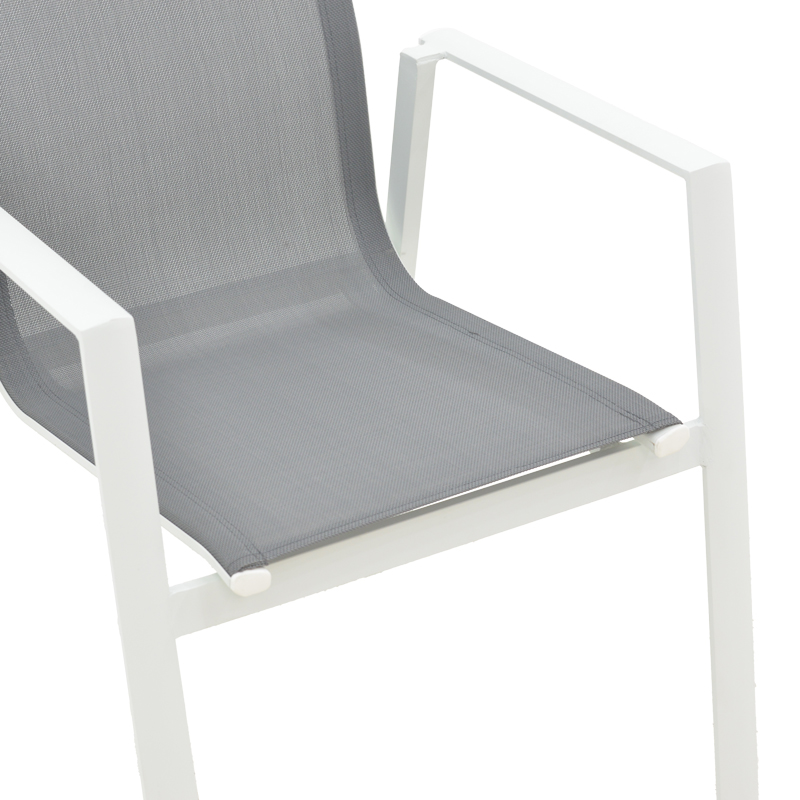 • Σταθερός σκελετός από εξαιρετικής ποιότητας αλουμίνιο  με αντοχή στην καταπόνηση και στη φθορά. Κυρίως σώμα καρέκλας από εξαιρετικής ποιότητας textilene. Το textilene είναι ύφασμα μεγάλης αντοχής στην ηλιακή ακτινοβολία και την υγρασία ενώ παράλληλα αφήνει το δέρμα να “αναπνέει” δημιουργώντας έτσι άνεση στο κάθισμα.