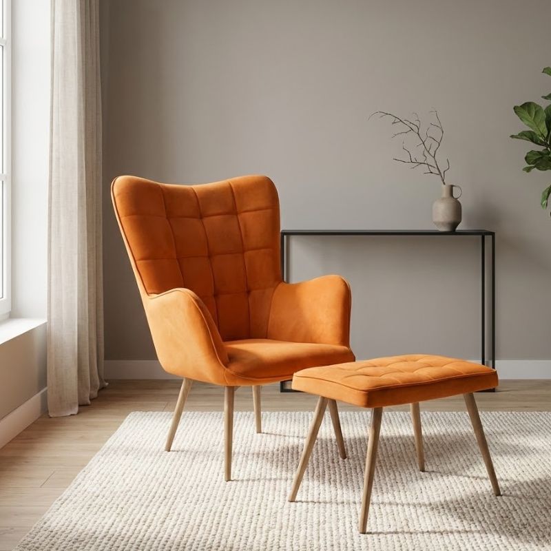 Η μπερζέρα με υποπόδιο Lily σε κροκί βελούδο είναι ένα statement κομμάτι