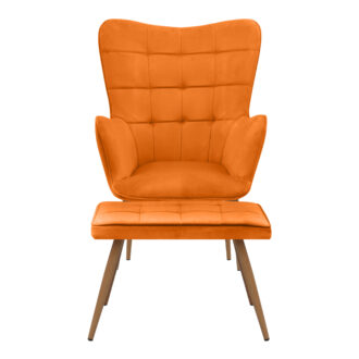 Πολυθρόνα – Μπερζέρα με υποπόδιο Lily Megapap κροκί βελούδο – μεταλλικό πόδι χρώμα φυσικό 70x62x98εκ.