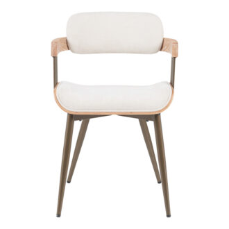 Η πολυθρόνα τραπεζαρίας Cameo συνδυάζει αρμονικά τη σύγχρονη αισθητική με την άνεση. Διαθέτει ένα καμπυλωτό κάθισμα και πλάτη, επενδυμένα με ένα απαλό ύφασμα που προσφέρει εξαιρετική άνεση για παρατεταμένα γεύματα. Οι λεπτομέρειες από φυσικό ξύλο στα μπράτσα προσθέτουν μια ζεστή, οργανική αίσθηση, ενώ οι λεπτές μεταλλικές ράβδοι στην πλάτη προσφέρουν μια ενδιαφέρουσα οπτική αντίθεση και υποστήριξη. Τα μεταλλικά πόδια ολοκληρώνουν την εκλεπτυσμένη εμφάνιση, προσδίδοντας σταθερότητα αλλά και μια αίσθηση ελαφρότητας.