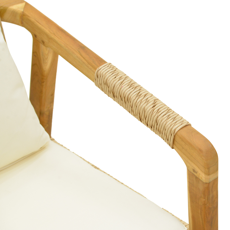 Αναβαθμίστε τον χώρο σας με την εκλεπτυσμένη πολυθρόνα Cuerda που συνδυάζει άψογα την αντοχή του ξύλου teak με την απαλή αίσθηση του πλεγμένου σχοινιού. Αυτή η πολυθρόνα είναι σχεδιασμένη για να προσφέρει τόσο στυλ όσο και απαράμιλλη άνεση, καθιστώντας την την ιδανική προσθήκη σε κάθε σαλόνι, βεράντα ή χώρο χαλάρωσης.