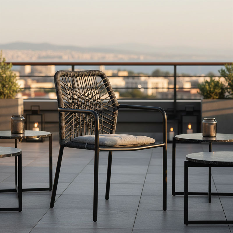 - Χρώμα: αλουμίνιο ανθρακί-σχοινί ανθρακί-μαξιλάρι γκρι.