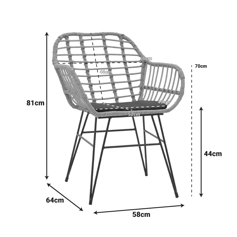 - Κυρίως επιφάνεια πολυθρόνας από PE rattan. Το PE rattan είναι ένα είδος οικολογικού συνθετικού rattan, ανακυκλώσιμο και με μεγαλύτερη ανθεκτικότητα σε σχέση με τα άλλα είδη.