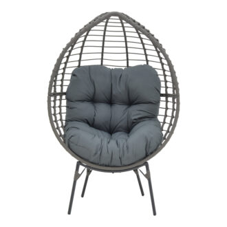 Πολυθρόνα Nestie pakoworld wicker rattan γκρι-μεταλλικό γκρι πόδι-γκρι μαξιλάρι 102x80x155εκ