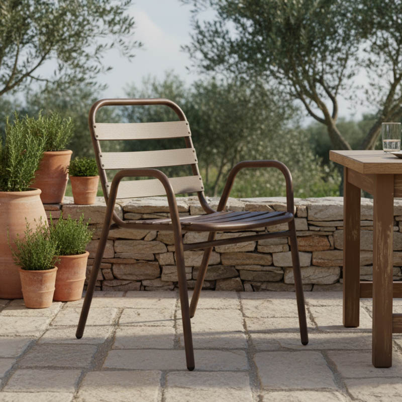 • Σταθερός σκελετός από μέταλλο εξαιρετικής ποιότητας με αντοχή σε φθορά και χρόνο, ενώ τα κομμάτια έδρας και πλάτης είναι κατασκευασμένα από φέτες αλουμινίου. Το μέταλλο παρέχει ανθεκτικότητα και σταθερότητα, ενώ οι φέτες αλουμινίου προσθέτουν ελαφρότητα και μια μοντέρνα αίσθηση στον σχεδιασμό. Η πολυθρόνα αυτή είναι ιδανική για χρήση σε εξωτερικούς χώρους, καθώς η ανθεκτικότητα στις καιρικές συνθήκες του αλουμινίου την καθιστά ανθεκτική σε έκθεση στον ήλιο και την υγρασία.