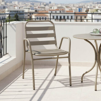 - Σταθερός σκελετός από μέταλλο εξαιρετικής ποιότητας με αντοχή σε φθορά και χρόνο, ενώ τα κομμάτια έδρας και πλάτης είναι κατασκευασμένα από φέτες αλουμινίου. Το μέταλλο παρέχει ανθεκτικότητα και σταθερότητα, ενώ οι φέτες αλουμινίου προσθέτουν ελαφρότητα και μια μοντέρνα αίσθηση στον σχεδιασμό. Η πολυθρόνα αυτή είναι ιδανική για χρήση σε εξωτερικούς χώρους, καθώς η ανθεκτικότητα στις καιρικές συνθήκες του αλουμινίου την καθιστά ανθεκτική σε έκθεση στον ήλιο και την υγρασία.