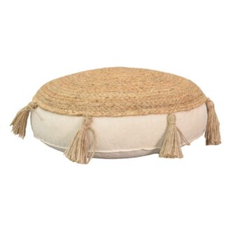 Πουφ Elefon Inart φυσικό-εκρού ύφασμα Φ35×12εκ