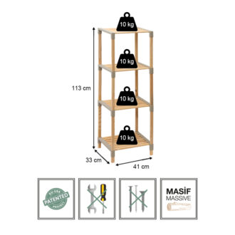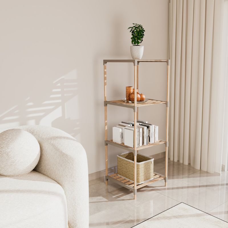 Ραφιέρα δαπέδου ξύλινη – πλαστική χρώμα φυσικό – μπεζ 41x33x113εκ.