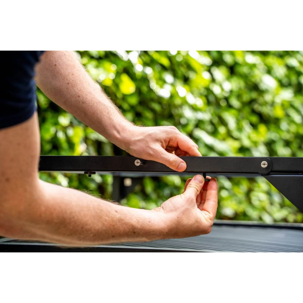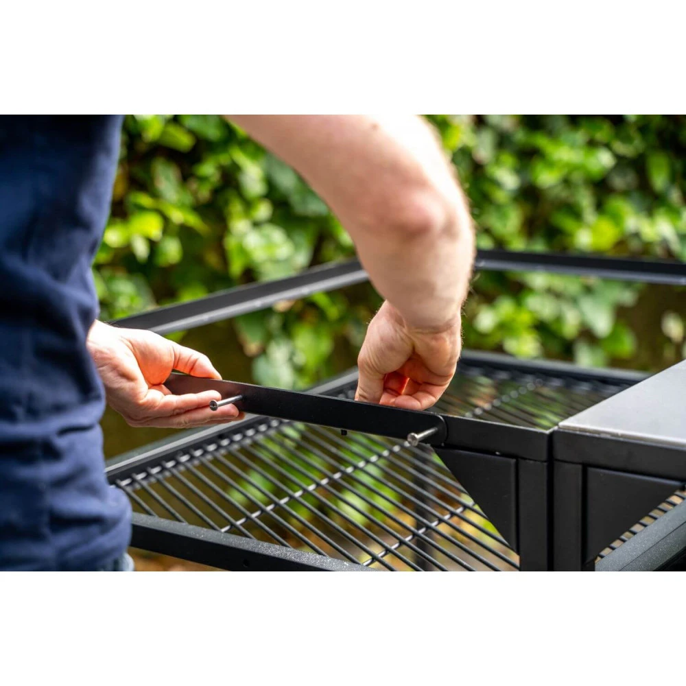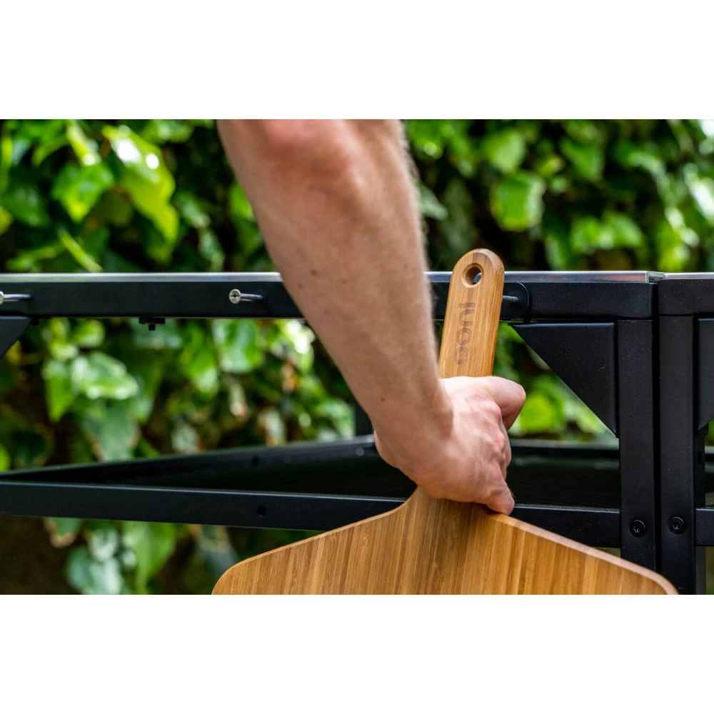 Το σώμα είναι από ανθρακούχο ατσάλι με βαφή πούδρας και τα άγκιστρα από ανοξείδωτο χάλυβα για να ταιριάζει αισθητικά με τα Ανοξείδωτα τραπέζια της Ooni και να δίνει στυλ στο χώρο σου.