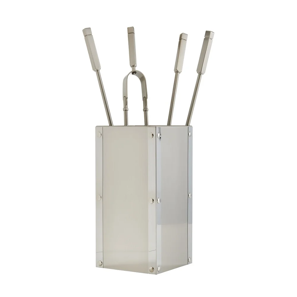 Σετ εργαλεία σε κουβά Ν 1215-K26 Νίκελ Ματ/Χρώμιο. Εκπληκτική πρωτότυπη τετράγωνη σειρά Κουβά Σετ με 4 Εργαλεία για μια μοναδική διακόσμηση του τζακιού σας. Ο Κουβάς είναι ιδιαιτέρως πρακτικός και εύχρηστος καθώς μαζεύει όλες τις στάχτες.